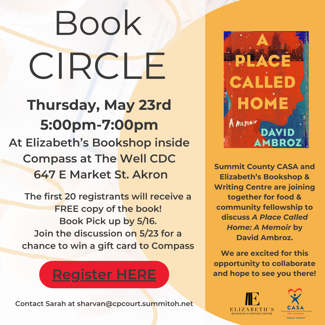 Elizabeth’s Bookshop & Writing Centre is partnering with CASA Summit County (Court Appointed Special Advocates for children), to host this month's CASA Book Circle on A Place Called Home: A Memoir by David Ambroz.